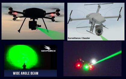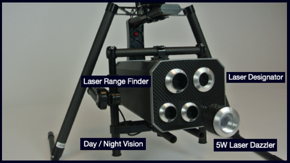 Laser Designator, Laser Rangefinder, Laser Dazzler, IMSI Catcher, Counter UAS Dazzler / Aerial Private Cell Network.