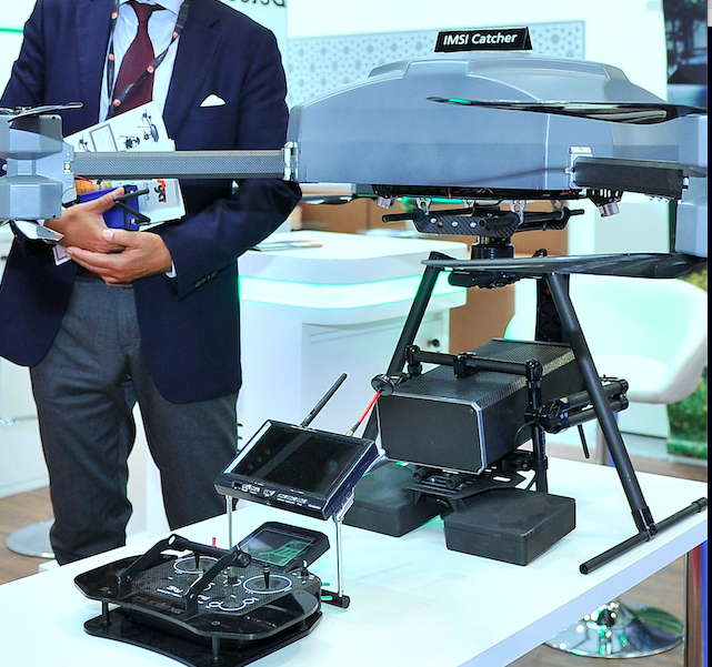 Gremsy gimbal and IMSI Catcher and dual EO/R sensors with two antenna transmitter/receiver units for MultiCopters. Acts as a cellular tower and can detect, locate or identify the registered owners of active SIM cards / Mobile phones. For aerial search, rescue and disaster management.